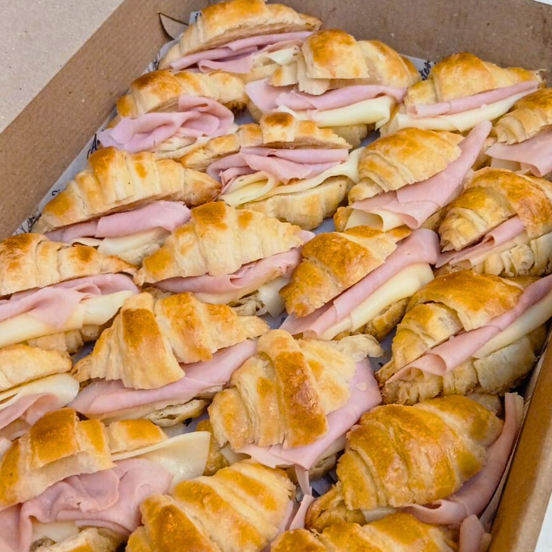 Contém: Caixa com 20 unidades de Sandcuichnhos de Croissant Recheados sabor presunto e queijo.